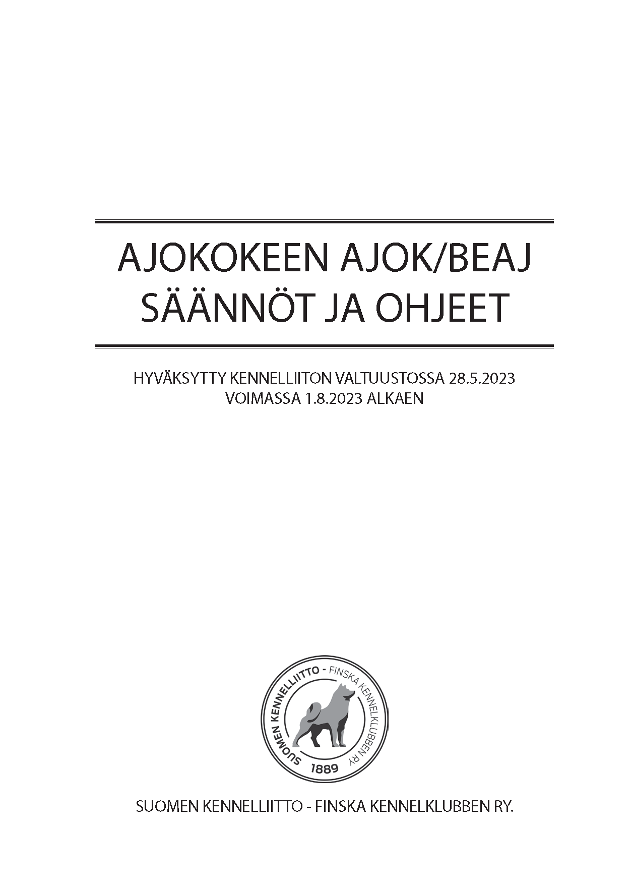 Hyväksytty Suomen Kennelliiton valtuustossa 28.5.2023. Voimassa 1.8.2023 alkaen.