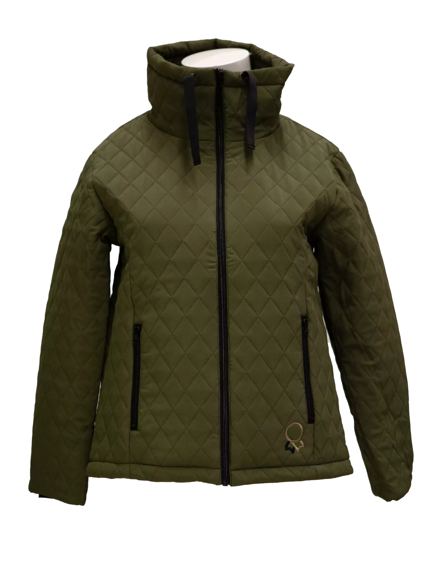 Ihastuttava uutuus takkivalikoimassa! Coccardan oliivinvärinen tikkitakki on suunniteltu naisille ja on ommeltu Showlinkin omilla kaavoilla. Korkea kaulus suojaa tuulelta tai sen voi taittaa alas normaalin kauluksen tapaan. Takissa on vetoketjutaskut ja toisen taskun vieressä on brodeerattuna tyylikäs Coccarda-logo.