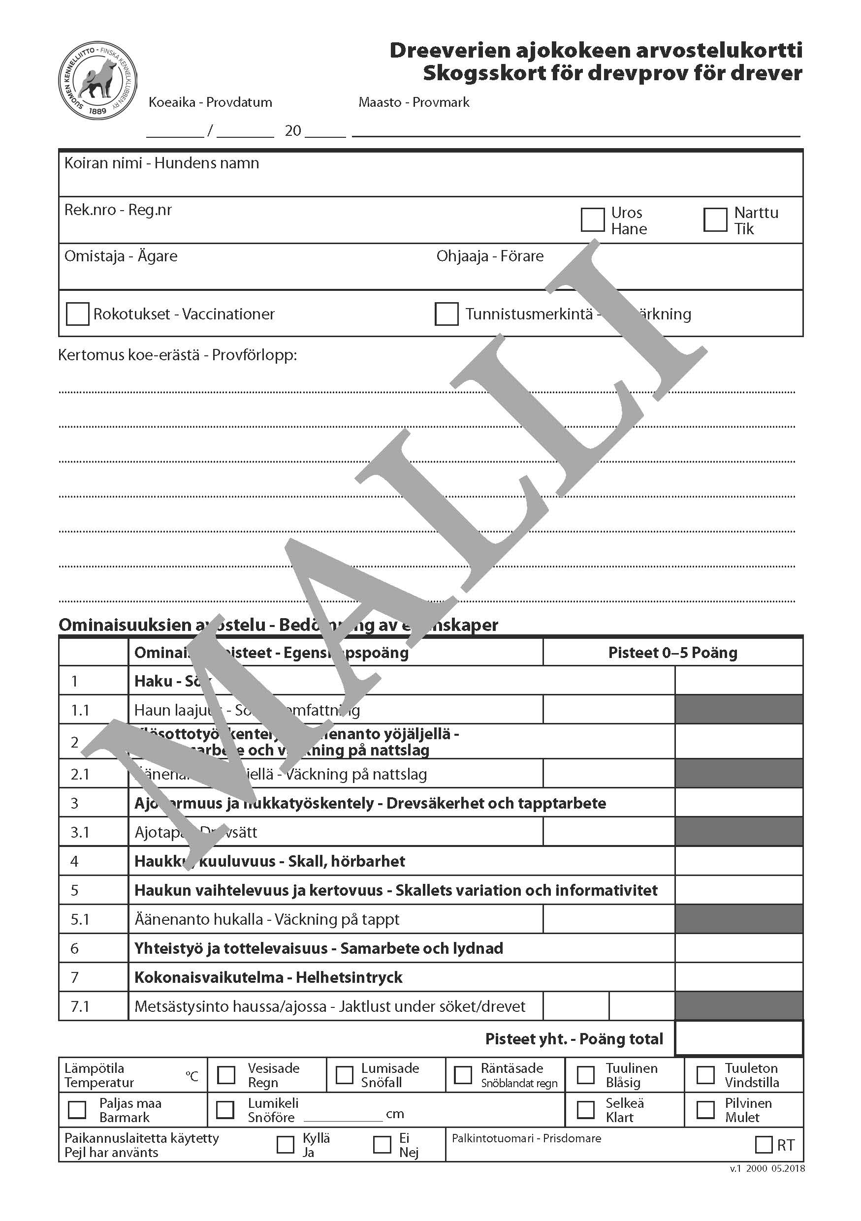 Dreevereiden ajokokeen (DRAJ) arvostelukortti