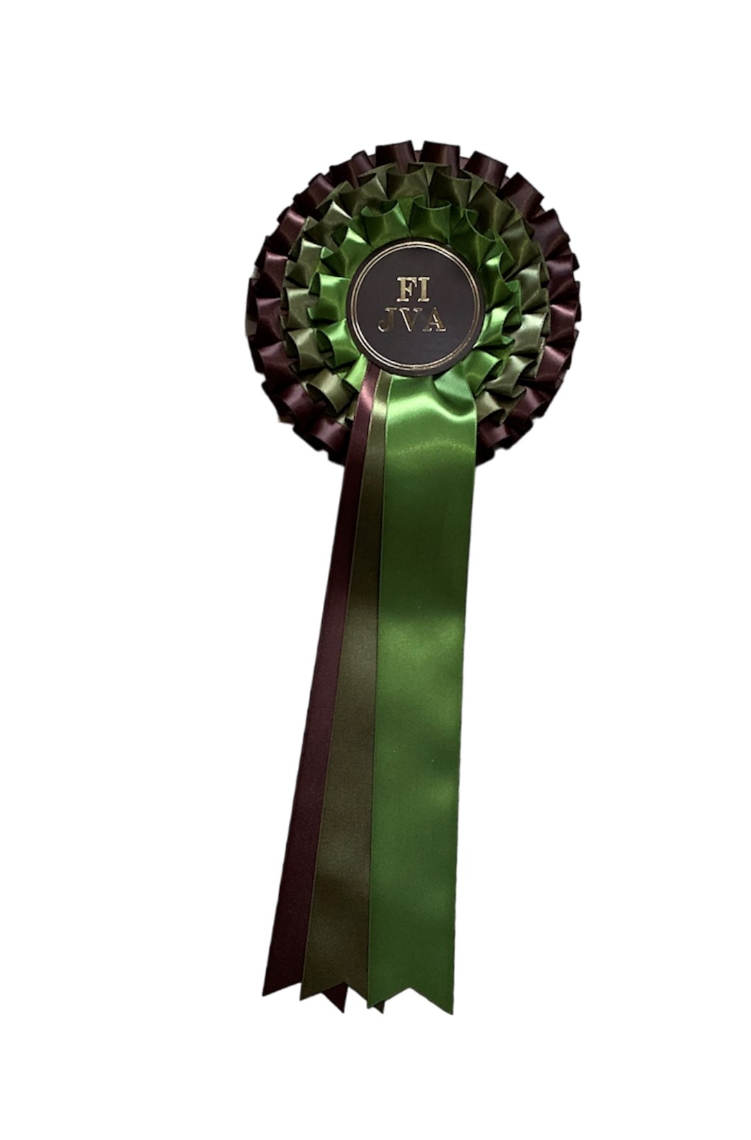 FI JVA - Suomen jälkivalio ruusuke. Ruusukkeen läpimitta on 14 cm ja häntien pituus ruusukkeen ulkoreunasta noin 22 cm.