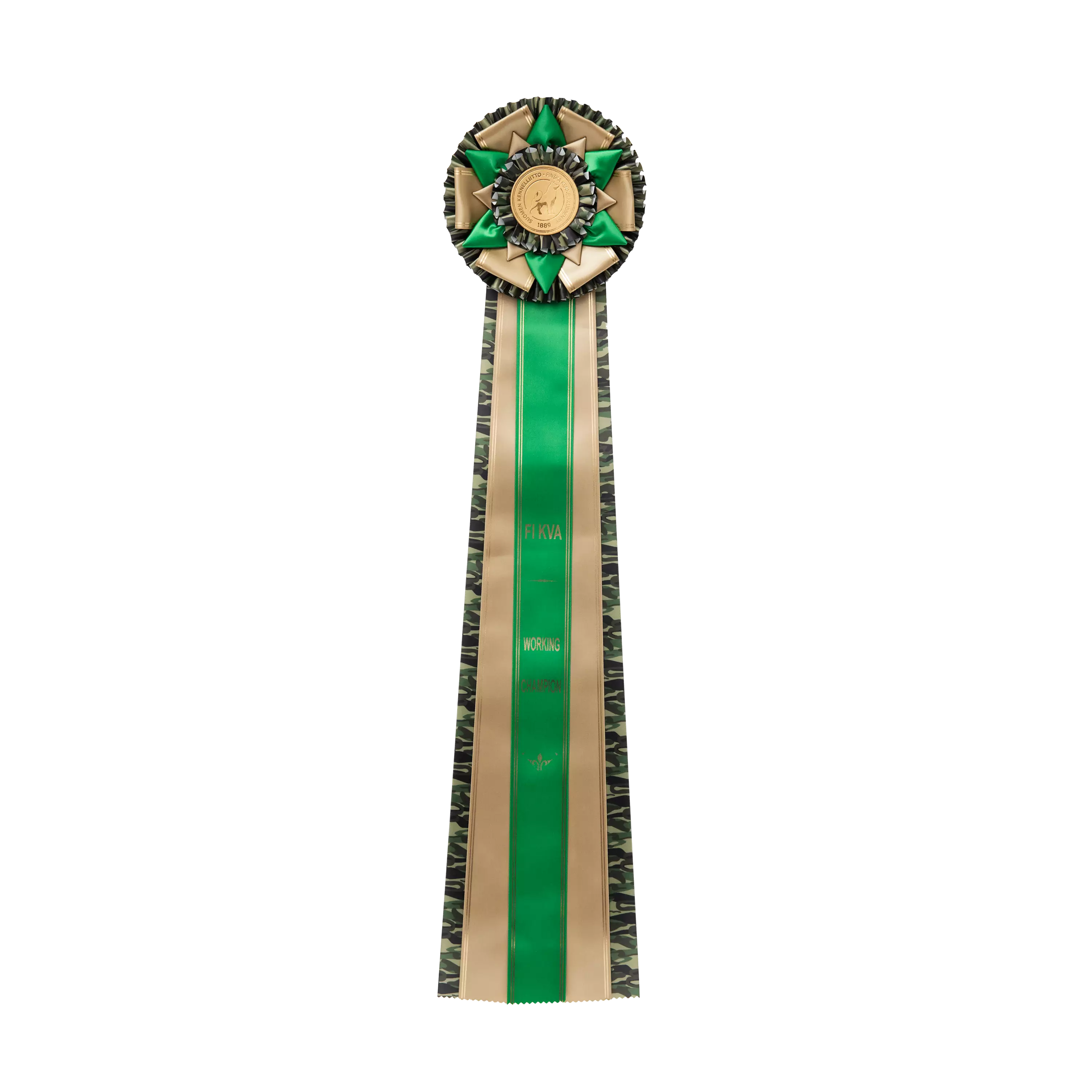 Upea FI KVA -Suomen käyttövalio ruusuke. Halkaisija 16 cm ja 5 nauhaa, joiden pituus on 57 cm. Nauhoissa teksti FI KVA Working Champion. Ruusukkeen materiaali kiiltävä silkki. Takana koukkukiinnitys. Keskiössä Kennelliiton logo.