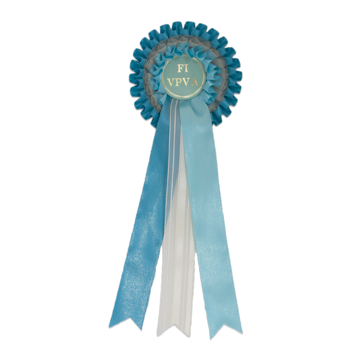 FI VPVA - Suomen vesipelastusvalio ruusuke. Ruusukkeen läpimitta on 14 cm ja häntien pituus 28,5 cm.