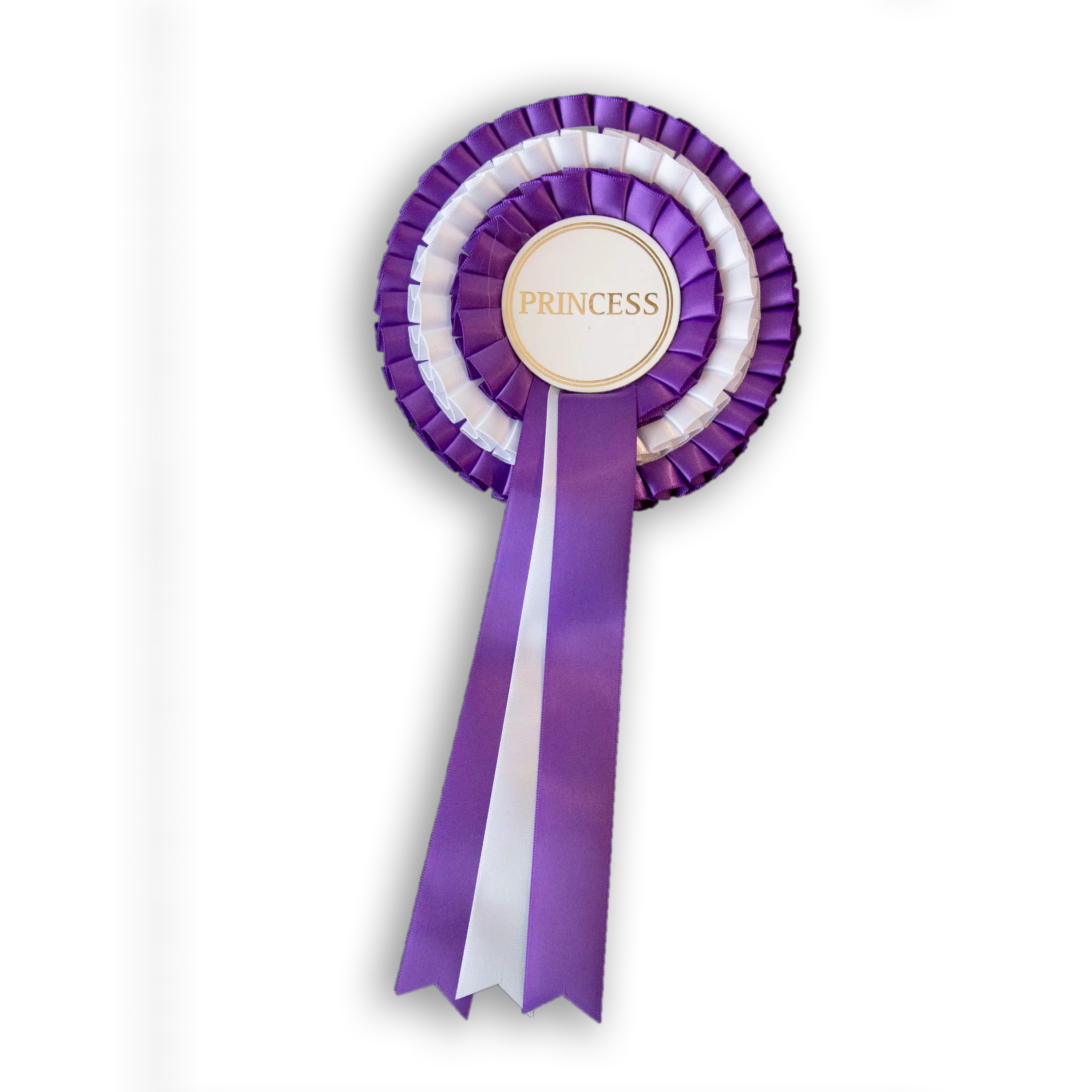 Ruusukkeen keskiössä kultakirjaimin teksti "PRINCESS". Ruusuke on 14 cm leveä, keskiön halkaisija on 5,9 cm ja kokonaispituus on 22,5 cm.