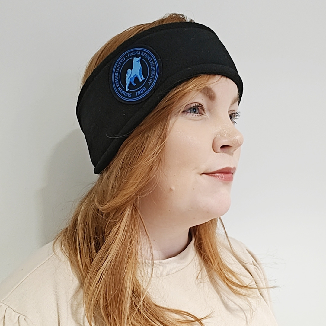 Mukavasti korvia lämmittävä Kennelliitto PRO fleecepanta. Pehmeässä pannassa on pyöreä Kennelliiton merkki.
