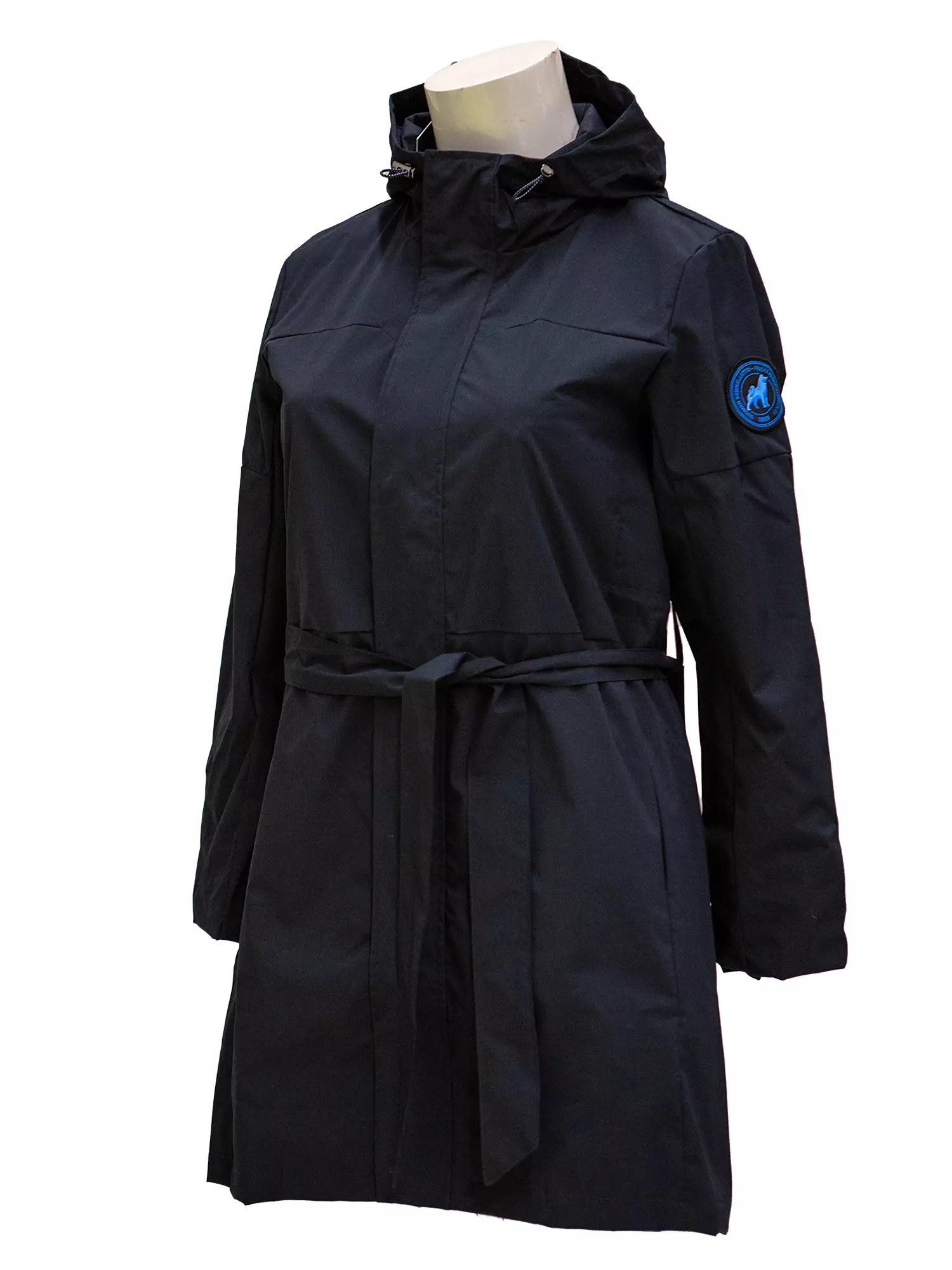 Paljon odotettu Kennelliitto-uutuustakki naisille! Tyylikäs, todella tumman navyn värinen takki on toteutettu jälleen Showlinkin omilla kaavoilla naisille. Takki on valmitettu vedenkestävästä kankaasta, mutta siinä ei ole teipattuija saumoja. Vasemmassa hihassa on Kennelliiton pyöreä merkki. Ihana pidempi malli sopii moneen käyttöön. Vyötärölle solmittava vyö tekee takista juhlavamman, mutta vyön voi myös jättää pois vaikka lenkille lähtiessä.