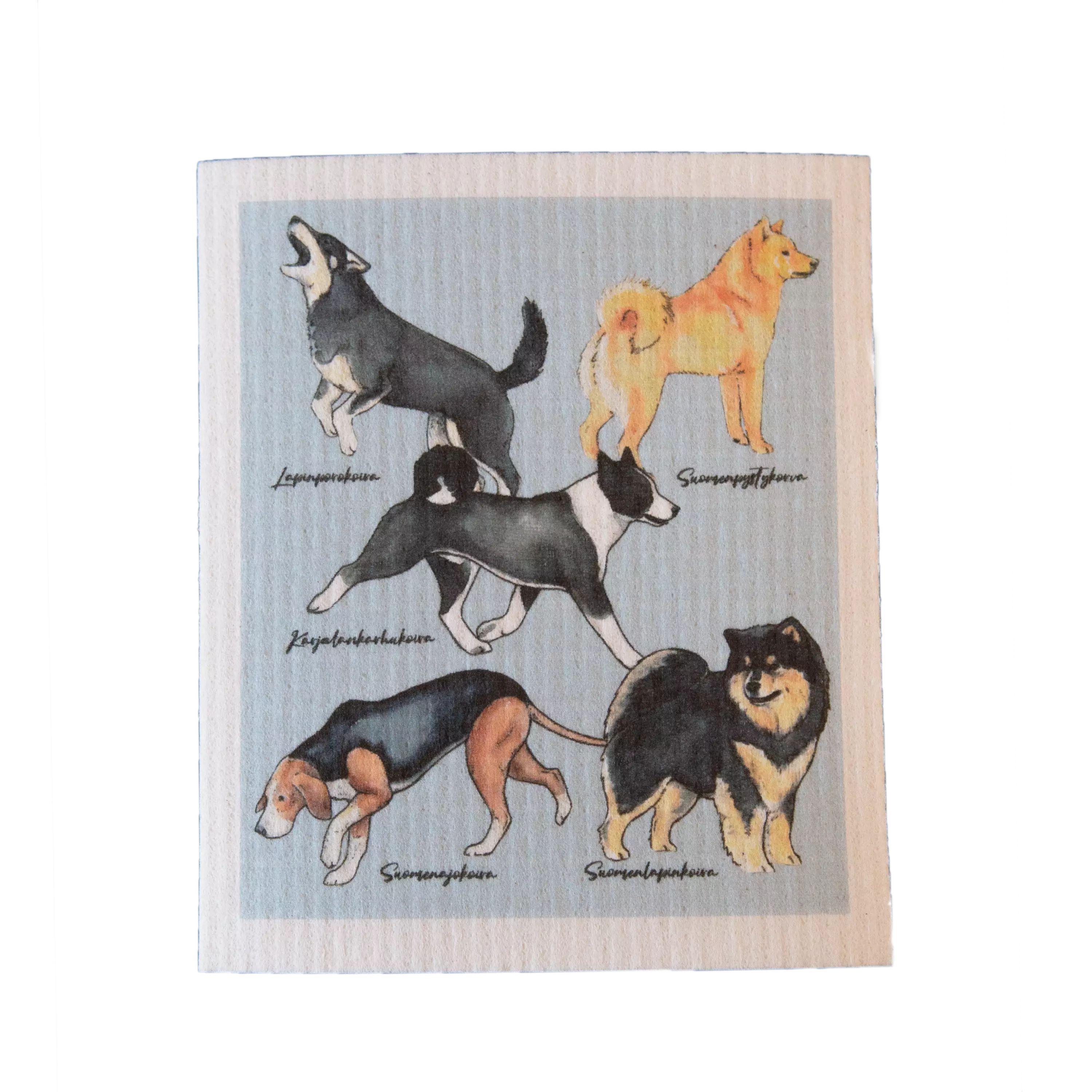Kotimaisilla roduilla kuvitettu keittiöliina saa kotityötkin sujumaan helpommin. Kotimaisten rotujen kuvat on piirtänyt Riina Haapakallio/Haapakallio Design. http://haapakalliodesign.portfoliobox.net/