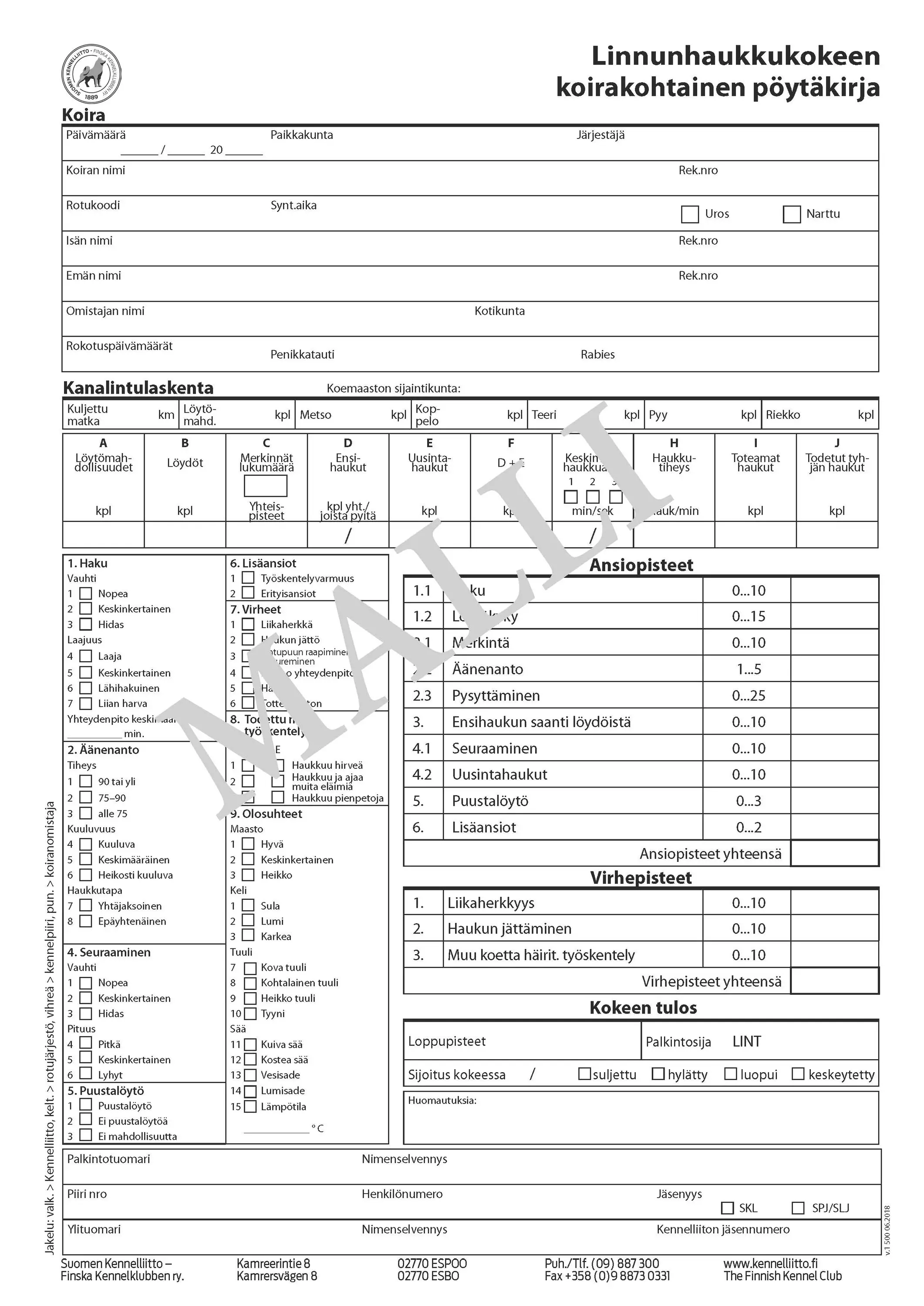 LINT pöytäkirja.Linnunhaukkukokeen pöytäkirja.