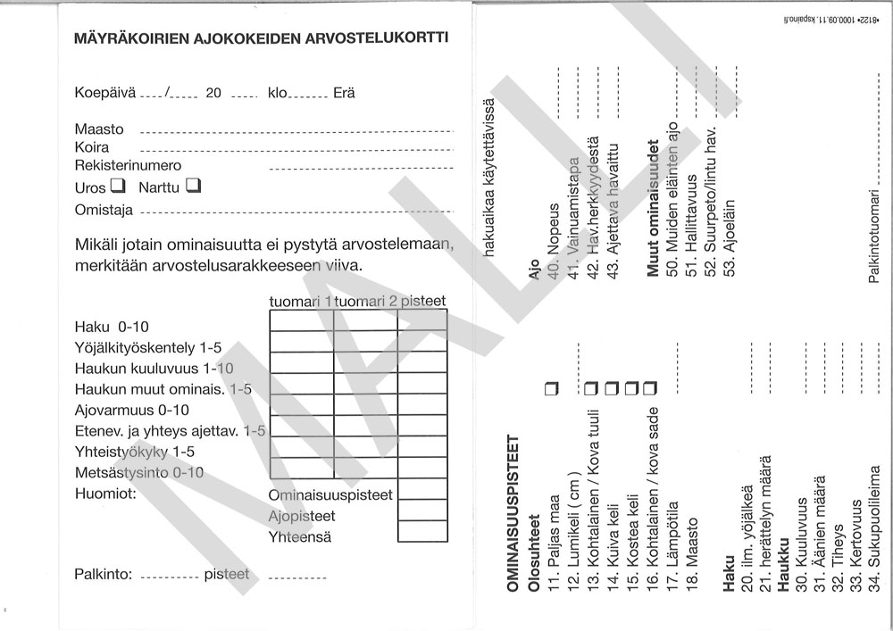 Mäyräkoirien ajokokeen (MÄAJ) maastokortti.