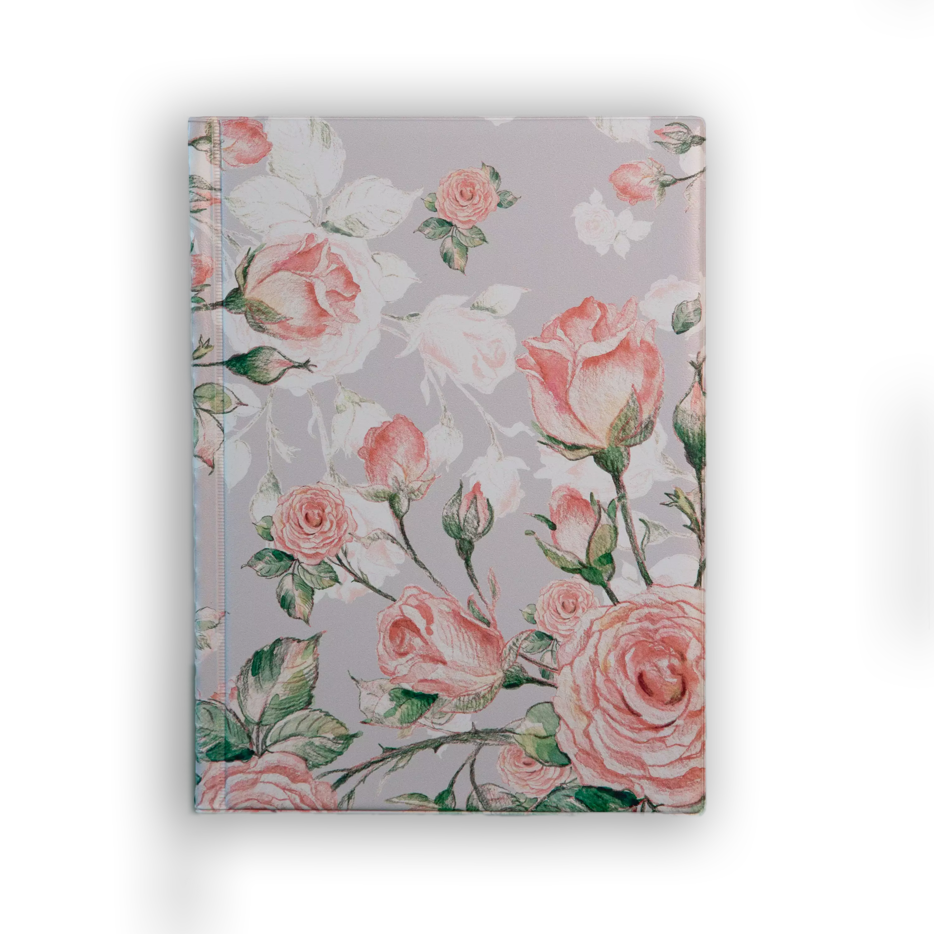 Näyttelykansio on kooltaan A5 ja siinä on 4 kpl A4 (taitettu) ja 4 kpl A5 kokoisia taskuja. Kannen materiaali on muovia.