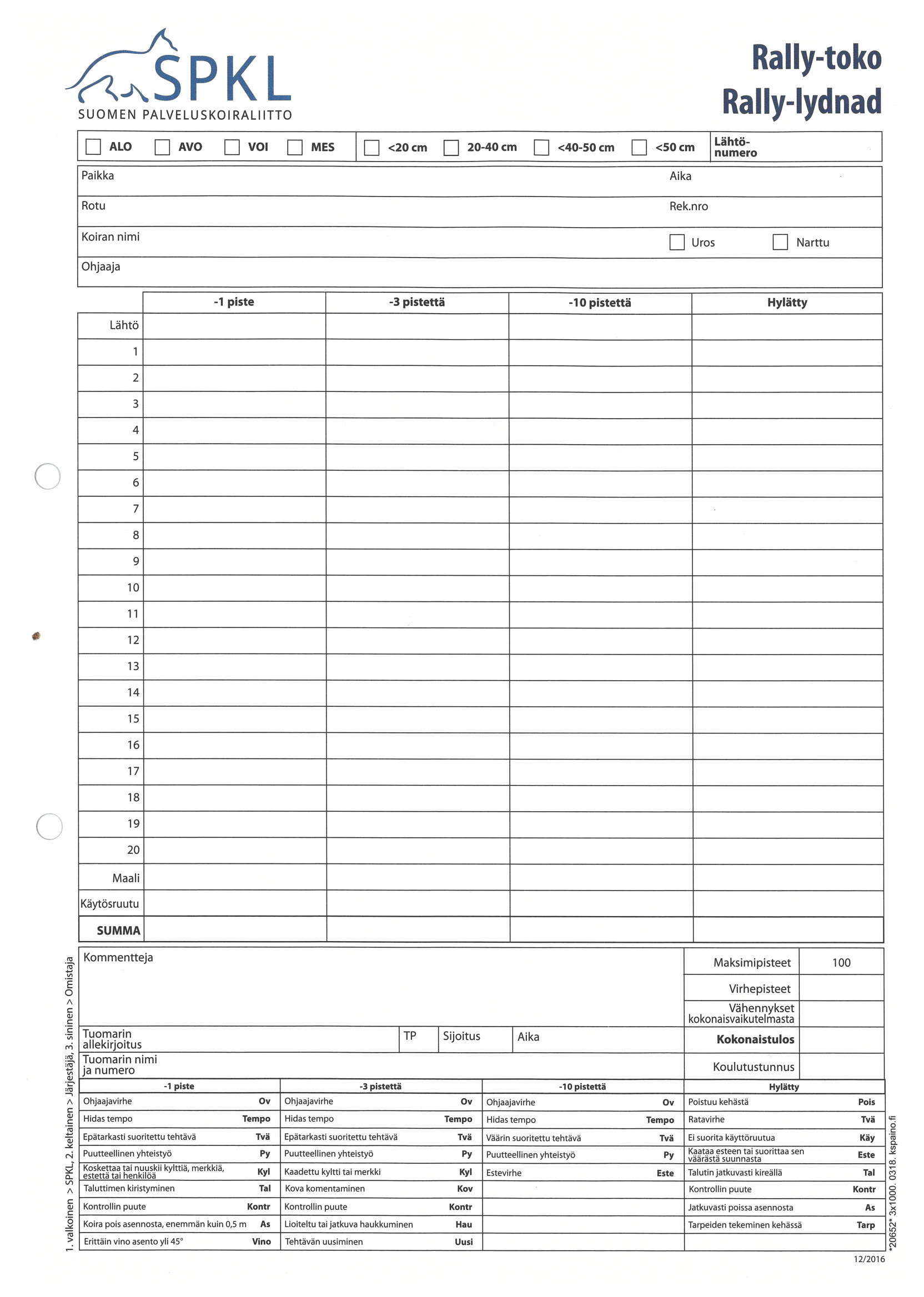 Rally-Tokon arvostelulomake. Vuoden 2026 painos.