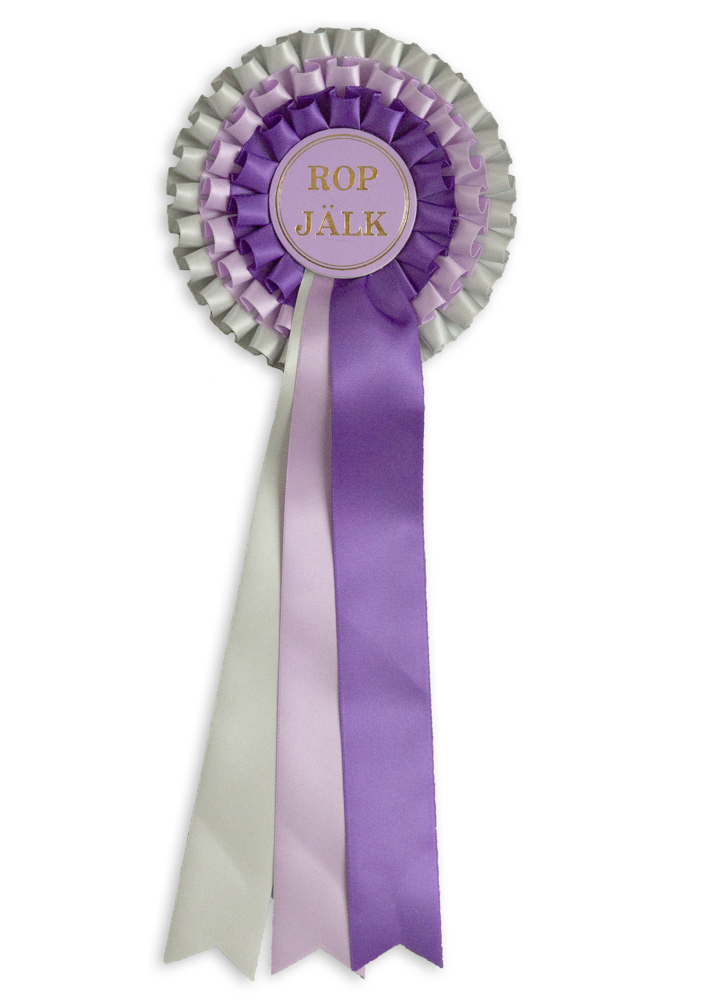 ROP JÄLK - Rotunsa paras jälkeläisluokka ruusuke on kolmikehäinen ruusuke. Ruusukkeen leveys 14 cm, keskiön halkaisija 5,9 cm ja kokonaispituus 22,5 cm.