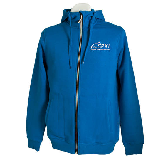 Hupparitakki, jossa kontrastivärinen vetoketju. Erittäin miellyttävä ja pehmeä huppari. Rinnassa SPKL logo joka on 10 cm leveä ja 4 cm korkea. Reunustetut taskut. Kiristysnyöri hupussa. Huppu vuorattu single jersey -trikoolla.