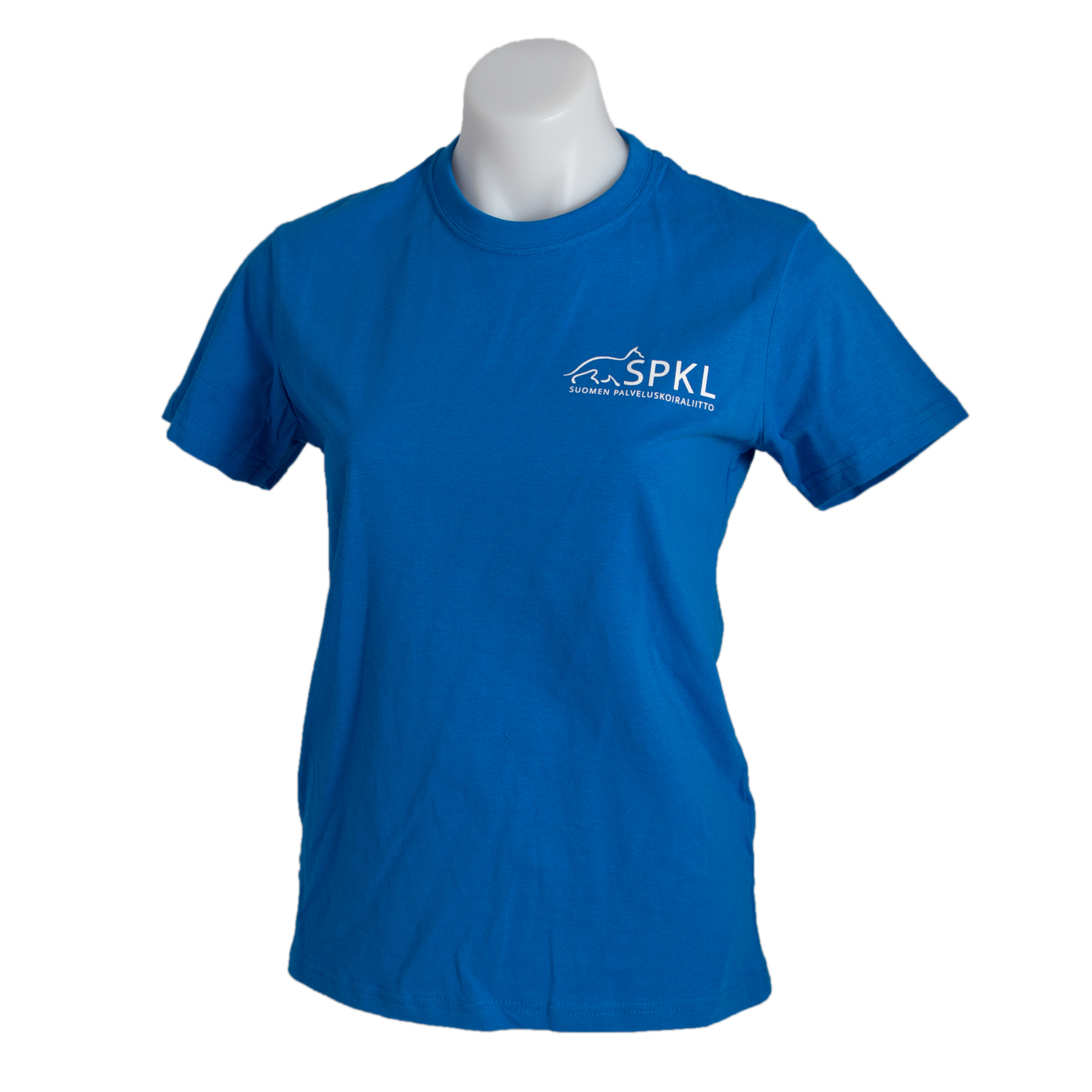 Naisten T-paita, jossa vahvistetut olkasaumat ja kaularesori. Rinnassa oikealla puolella SPKL logo joka on 10 cm leveä ja 4 cm korkea. Valmistettu 100 % puuvillasta.